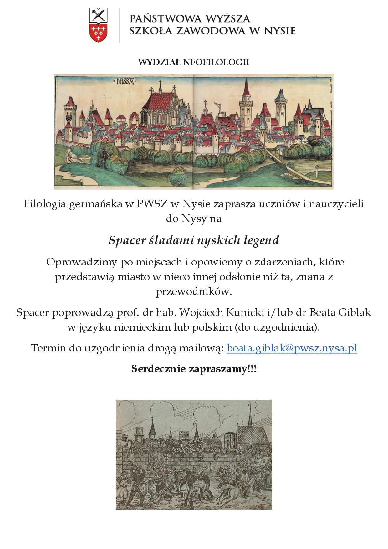 Spacer jest jedną z form zajęć od lat praktykowanych na nyskiej germanistyce w ramach zajęć projektowych. Mamy nadzieję, że zachęcił on uczniów zarówno do zgłębiania niezwykle interesujących dziejów miasta a także języka niemieckiego i był okazją do nauczenia się i przypomnienia sobie kilku słówek :)