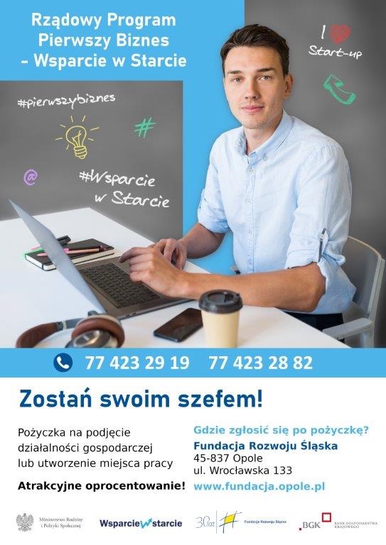 "Rządowy Program Pierwszy Biznes – Wsparcie w starcie" to program Ministerstwa Rodziny i Polityki Społecznej, realizowany przez Bank Gospodarstwa Krajowego. Program oferuje nisko oprocentowane pożyczki na podjęcie działalności gospodarczej oraz pożyczki na utworzenie stanowiska pracy. Wsparcie skierowane jest do absolwentów szkół i uczelni wyższych oraz do studentów ostatniego roku studiów, osób bezrobotnych, a także opiekunów osób niepełnosprawnych.