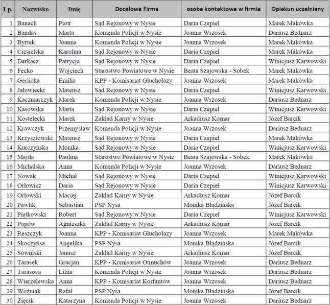 Rozstrzygnięty został drugi nabór studentów Instytutu Bezpieczeństwa Państwowej Wyższej Szkoły Zawodowej w Nysie do udziału w pilotażowym programie, 6-cio miesięcznych płatnych praktyk zawodowych.
