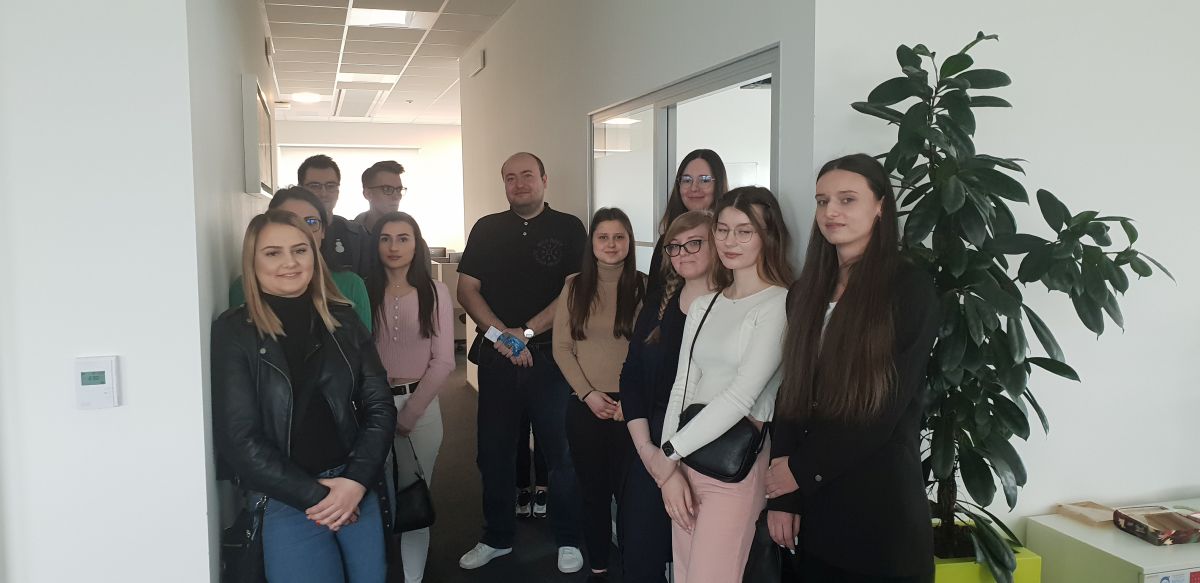 W trakcie wizyty pracownicy przedstawili firmę tj. informacje o jej funkcjonowaniu, zarządzaniu, strukturze wewnętrznej, omówili możliwości edukacji i kariery.